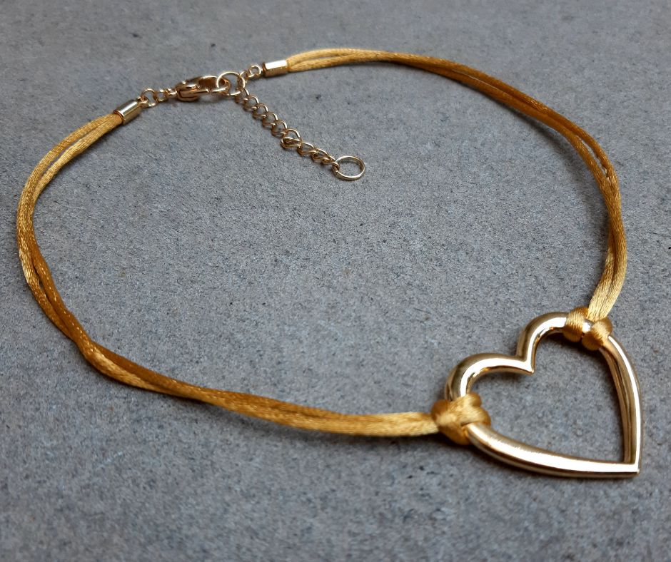COLAR MARILENE / FIO CETIM DOURADO / CORAÇÃO METAL